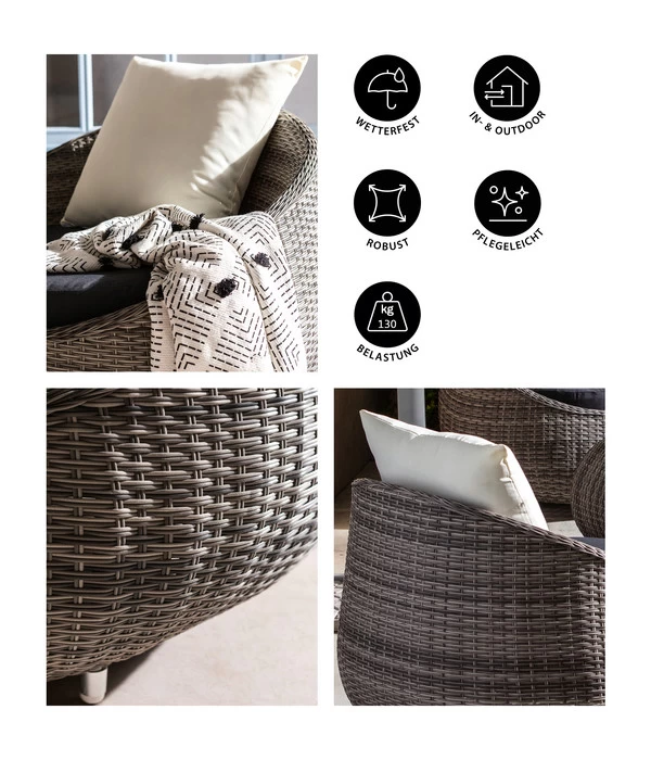 Geflecht Polyrattan, stabiles Alugestell, Sitzpolster inkl.