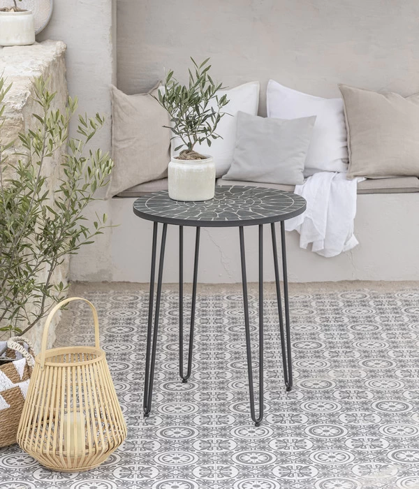Seine Beine aus Metall garantieren dem Dehner Mosaiktisch Madeleine zu jeder Zeit einen stabilen Stand. Daher eignet er sich ebenso gut für den Indoorbereich, wo Sie das ansehnliche Möbelstück beispielsweise als Beistelltisch im Wohnzimmer oder als Blumenständer für Ihre Grünlinge nutzen können. Auch hier punktet er mit seiner Tischplatte aus den wunderschön arrangierten Mosaiksteinen, mit denen er Sie immer wieder aufs Neue erfreuen wird. Lassen Sie sich diesen Augenschmaus nicht entgehen, sondern bestellen Sie den Mosaiktisch Madeleine des Herstellers Dehner am besten jetzt gleich!
