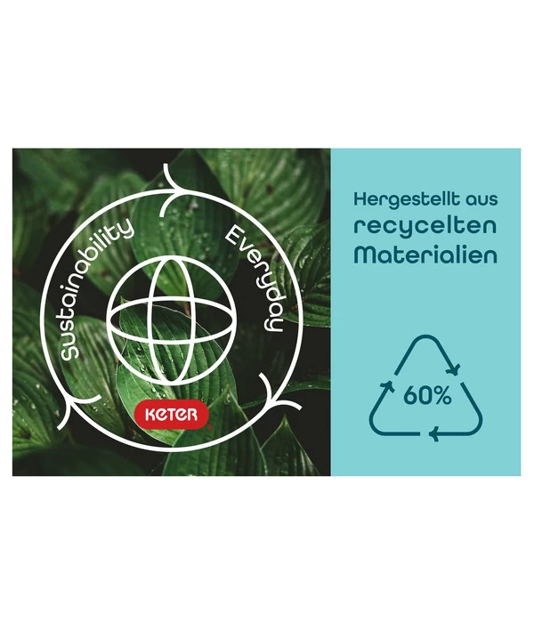 Die Keter Aufbewahrungsbox Sumatra wird vom Marktführer für qualitativ hochwertige Aufbewahrungslösungen aus Kunststoff hergestellt. Die Firma Keter Plastic konstruiert jedes ihrer Produkte so, dass ansprechendes Design, unvergleichliche Funktionalität und Haltbarkeit vereint werden. Das Leitmotiv hinter den Erzeugnissen des Unternehmens ist, das Leben der Menschen zu verbessern. Durch die Verwendung von 100 % recycelbarem Polypropylen-Kunststoff entstehen robuste, besonders pflegeleichte und haltbare Artikel. Die Produkte des Unternehmens wurden schon oft mit renommierten, internationalen Auszeichnungen geehrt. Keter Plastic gehört zur Keter-Gruppe – einem seit vielen Jahren bestehenden, globalen Konzern.